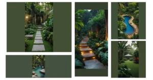 Walking through this garden is like getting a VIP pass to nature, but for introverts who prefer smaller crowds – specifically, a crowd of really happy plants! It’s proof that you don’t need acres of land to have a jungle adventure; just a really clever design and maybe a few plant whisperers. Those neat stepping stones, all lined with smooth pebbles, make you feel like you’re on a secret mission to find the best spot for a quick selfie, without ever having to worry about getting lost. The ferns are practically high-fiving you as you pass, saying, “Welcome to our cozy green kingdom!”
