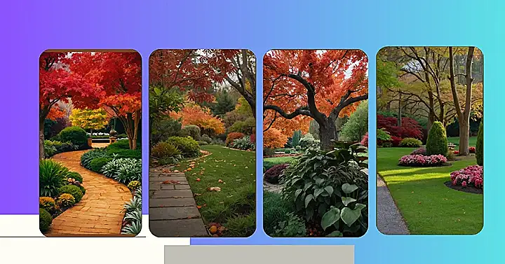 Imagine walking through a garden in the fall, the air crisp and cool. The leaves on the trees are turning fiery reds and oranges, like a giant painting splashed across the sky. This garden is a bit like that, but with even more colors! There’s bright yellow, deep green, and even some lovely purple hiding in the mix. It’s like someone spilled a rainbow of paint all over the place and then let nature do its magic.