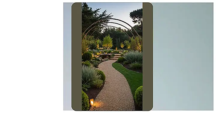 And keep going, because wow, check out that spot with the fire pit! It looks perfect for roasting marshmallows or telling slightly-spooky stories under the night sky, with those cool metal arches curving overhead like they’re giving the whole place a giant hug. This whole ‘forest garden’ idea basically takes the best bits of hanging out in the woods – like the awesome trees and peaceful feeling – and mixes it with a super cool garden where you can actually chill without tripping over roots. It’s like nature decided to throw a party and invited all its best-dressed plants, complete with mood lighting.