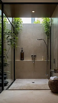 Imagine stepping into this shower after a brutal Monday – it’s like walking straight into a jungle spa! Forget those boring tile walls, this bathroom’s rocking some serious greenery. It’s got plants everywhere, making you feel like you’re showering in the Amazon (minus the actual bugs, hopefully). Talk about a way to ditch the stress and pretend you’re on vacation when you’re really just avoiding homework.