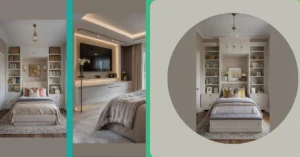 So, you want your bedroom to look less like a disaster zone and more like a fancy hotel room? Well, you’re in luck! Check out this design, which is leaning into the “comfy spaceship” vibe. The padded headboard is not only kinda cool and futuristic but also prevents head bumps when you’re on your phone in bed at 3 AM. Plus, the soft lighting means you can ditch that harsh overhead light and actually relax for once.