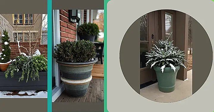 Imagine this: it’s a chilly winter day, and the snow is softly falling. You’re snuggled up inside, watching the world go by. Then, you look outside and see this beautiful planter on your front porch. It’s like a little piece of summer that’s braved the cold weather! The green plants are dusted with snow, looking like they’re wearing tiny, fluffy hats. It’s a reminder that even in the coldest months, beauty can still be found.