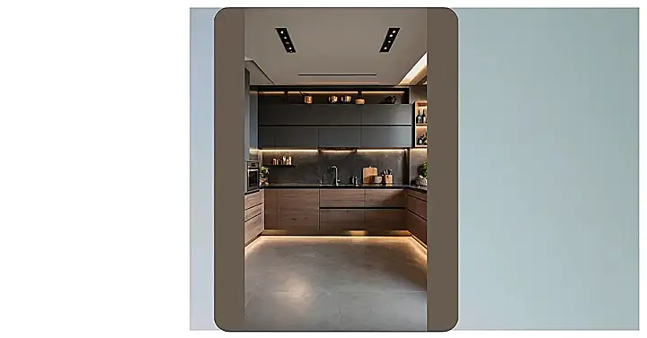 Gaze upon this magnificent creation! This isn’t just a kitchen; it’s practically a work of art where every cabinet door and sleek countertop screams “designer kitchen perfection.” With its super-clean lines, snazzy wooden accents, and that impressive marble backsplash, you might feel like you need to wear a fancy apron just to boil water. It’s so pristine, you’d almost expect a velvet rope to appear, protecting it from any stray crumbs or accidental juice splatters. My own kitchen is probably feeling a serious inferiority complex right now.