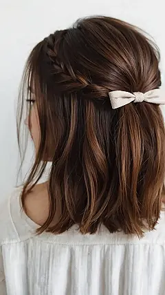 Imagine you’re strolling down the hallway at school, hair flowing behind you like a waterfall, and everyone stops to admire your soft, bouncy locks. The bow adds a touch of whimsy and sweetness, making you look like a princess who just escaped from a fairytale. And the best part? You can totally rock this look with just a few minutes and a simple ribbon. So, go get that hair game strong and rock the bow-tiful look!