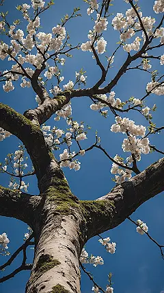 Staring up at this, you almost expect a tiny elf to pop out and offer you a magical cupcake, or maybe a squirrel to start singing opera – it’s just got that kind of magical, chill vibe. The way those branches reach out, all mossy and strong, holding up those delicate blossoms like they’re the most precious treasures in the world? Talk about serious tree goals! This view just screams “take a deep breath and forget about that pop quiz,” making it the perfect little escape for your eyeballs whenever you unlock your screen.