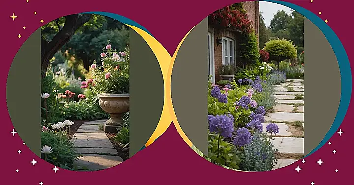 This picture shows a garden so beautiful, it’s like stepping into a fairytale! Lush green grass, a winding path made of stone, and flowers of every color imaginable, blooming in joyful chaos. It’s the kind of garden that makes you want to pack a picnic basket, grab your best friend, and spend the whole afternoon giggling and exploring.