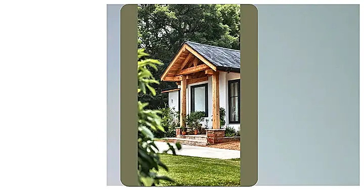 Dreamt of a house where ‘clean your room’ means tidying up, like, three steps? Check out this gem! This isn’t just a house; it’s a perfectly sized fortress of coziness, probably designed by someone who secretly hated vacuuming. With its welcoming wooden porch and those huge, awesome trees in the background, it practically screams, ‘Come on in, but don’t bring too much stuff!’ It’s proof that good things (and less chores) definitely come in smaller, super stylish packages, making you wonder why anyone needs a mansion just to misplace their phone.