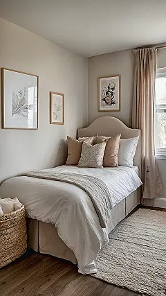 Look closely, and you’ll see every detail here is set up for maximum cozy points. Those framed art pieces add a touch of “I totally have my life together,” even if your actual desk is currently buried under textbooks and snack wrappers. And that shaggy rug? It’s practically a fluffy landing strip for your feet after a long day of, well, being feet. Plus, that cool woven basket isn’t just for decoration – it’s probably where all the “clean clothes” you haven’t put away yet mysteriously disappear. This isn’t just a bedroom; it’s a brilliant blueprint for creating a totally inviting space, showing that when you’re ready for ‘rooms to go’ from basic to totally beautiful, simple comfort always wins.
