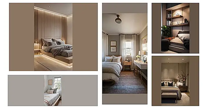 Think beige, think wood, think cozy. This image is proof that you don’t need a million throw pillows or a rainbow explosion of colors to make your bedroom awesome. The neutral palette makes the room feel spacious and calm – the kind of peaceful place you want after a long day. And that cool wooden headboard and nightstand? Total style points. Honestly, the whole thing just screams “come relax and recharge,” and after a killer math test, who wouldn’t want that?