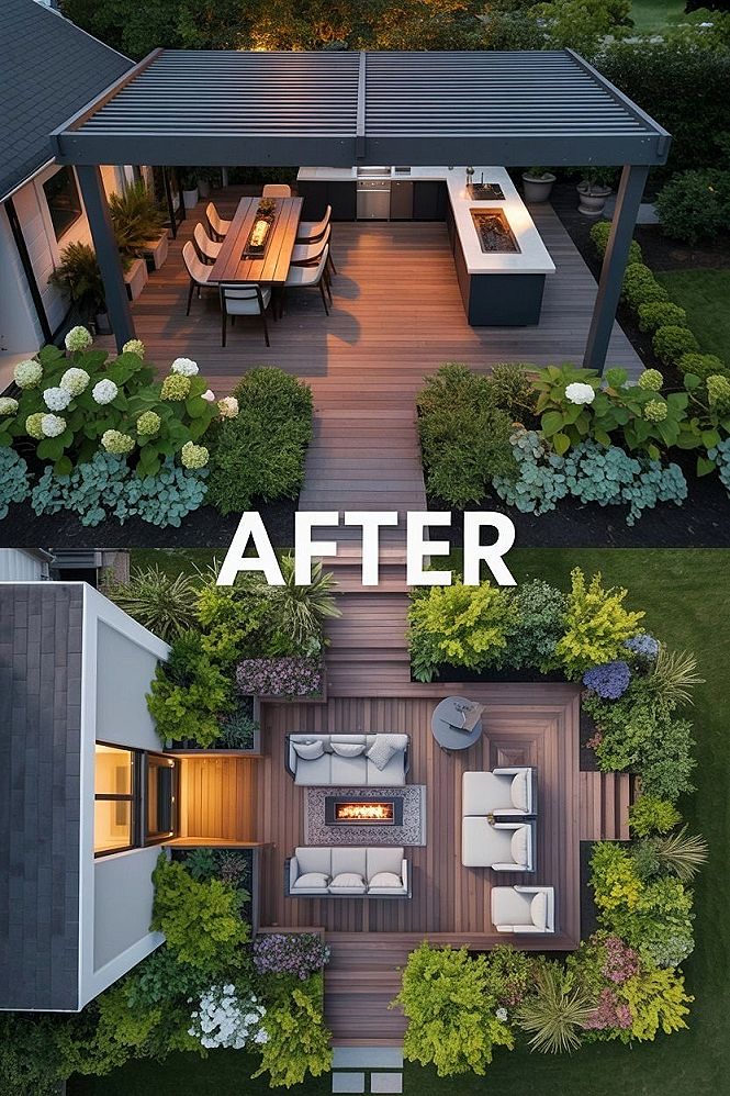 From its humble beginnings to a stunning reveal, this backyard makeover showcases a modern pergola and cozy seating, offering incredible backyard landscaping inspiration for your own house deck ideas.
