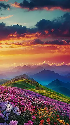 And look at that sky trying to steal the show with its epic sunset colors! The mountains in the background are doing their moody, majestic thing, but let’s be honest, the real party is happening right here with the flowers. This isn’t just a picture; it’s basically a mood booster you can carry around. Forget boring grey screens; this amazing flowers wallpaper brings the whole awesome outdoor party right to your fingertips.