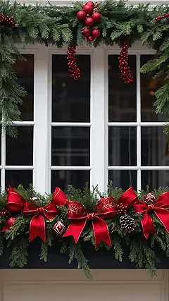 Walking past this window, you almost expect it to wink at you and offer a hot chocolate! It’s gone all out for Christmas, turning what used to be just a plain view into a super festive masterpiece. With all that gorgeous evergreen garland draped around, plus those perfectly tied red bows and shiny baubles, this window is basically a giant holiday card to the world. It’s definitely not shy about showing off its Christmas spirit, probably whispering to other windows, “Beat that, neighbours!”