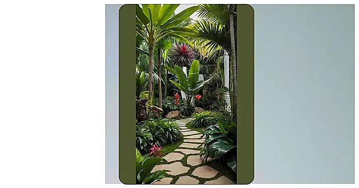 Wow, check out this amazing tropical garden! It’s bursting with bright colors and lush plants, proving that you don’t need a huge backyard to create your own little slice of paradise. Those fiery orange and deep red flowers practically jump out at you, and the winding stone path just begs you to explore. Imagine relaxing here after school – it’s the perfect place to unwind and forget about homework (for a little while, at least!).