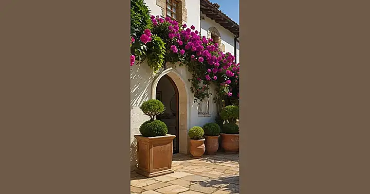 Picture this: you’re chilling in this Italian garden, sipping lemonade, and suddenly you hear someone yell “Mamma Mia!” Don’t worry, it’s probably just Grandma admiring the perfectly trimmed bushes and the way the pink flowers are exploding all over the wall. Seriously though, who wouldn’t want to hang out in a spot that looks straight out of a postcard?