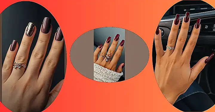 The burgundy color is just the right amount of bold, like a statement piece you can’t take your eyes off of. It’s like the nails are saying, “Hey, I’m here, I’m fierce, and I’m ready for anything!” You wouldn’t even need to do anything fancy with those nails. Just a little swipe of red, a quick dry, and you’re good to go! And that ring? Don’t even get me started. It just adds that extra touch of glam, like the cherry on top of a perfect sundae. It’s all about balance, and these nails have it in spades.