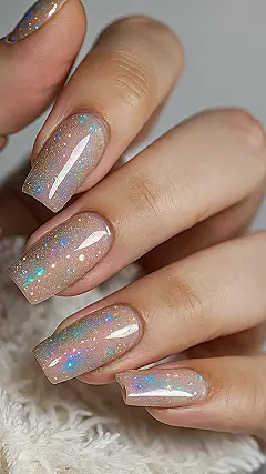 Get ready to have your mind blown by these nails that are basically tiny galaxies on your fingertips! They’re so shimmery and packed with glitter, it’s like a constellation decided to sparkle right there on your hands. But the real magic is that cool, shimmering line down the middle of each nail, playing peek-a-boo with shades of blue, pink, and gold. It’s called the “Cat Eye” effect, and it makes your nails look like they’re holding a secret, ready to mesmerize everyone with their dazzling, mysterious gaze.