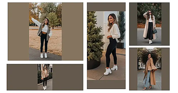 **Paragraph 1:** Okay, seriously, how cute is this outfit?! This girl is rocking the perfect “cute fall outfits” vibe. That camel-colored coat is seriously dreamy – it’s like a warm hug for your body. Paired with those sleek black leggings and chunky white boots, it’s the definition of effortless chic. I mean, imagine strolling through a pumpkin patch in this – you’d be the cutest pumpkin in the patch! The little brown purse adds a touch of class without being too fussy, making it perfect for carrying all your essential fall goodies.