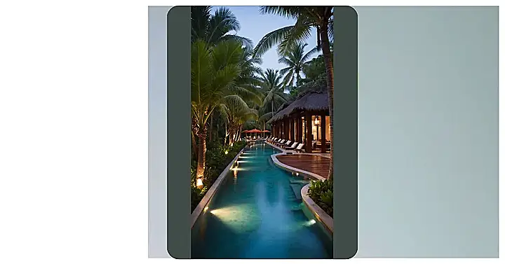 Forget about that pop quiz next week or who has to take out the trash, because *this* is the ultimate tropical hotel vibe! Look at that ridiculously cool pool, sparkling under those warm lights – it practically screams, “Jump in, the water’s fine (and probably has a free umbrella drink waiting for you).” Surrounded by so many palm trees, you’ll feel like you’ve landed in a real-life video game level, except instead of fighting villains, your main mission is to achieve peak relaxation. Honestly, you’d be hard-pressed to find a single cloud in the sky that isn’t made of pure chill.