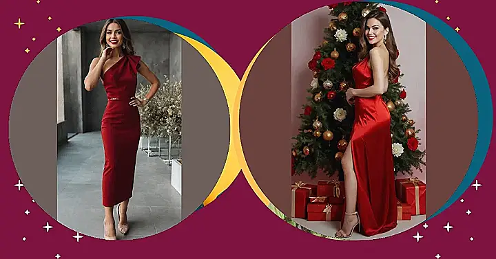 Who knew ‘red casual outfits for women’ could look this ridiculously fabulous? Our friend in the picture clearly got a different memo on ‘casual’ than the rest of us, because she’s serving major holiday glamour next to a Christmas tree that’s almost as decked out as she is! With that stunning red dress, perfectly matching handbag, and shoes that scream ‘I didn’t come to play, I came to slay,’ she’s basically saying, ‘My casual Friday is your New Year’s Eve gala.’ It’s a look so good, even the ornate staircase behind her is probably wondering where it can get an accessory like that.