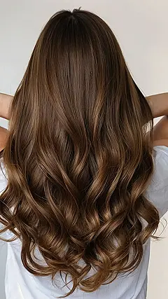 This hairstyle is like a dream! Imagine the feeling of running your fingers through hair as soft as silk. That’s the kind of luxurious feel this hairstyle gives off. It’s like a waterfall of glossy dark brown locks, with just a hint of caramel swirling through, making it look extra dreamy.