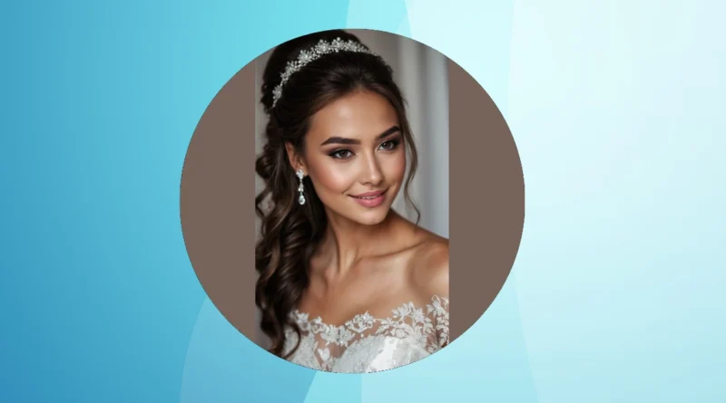 That sparkling headband isn’t just for show, either – it perfectly complements those dazzling drop earrings, giving her whole look that extra sprinkle of magic, like fresh frost on a windowpane! Plus, a hairstyle like this is genius for a winter wedding because it keeps most of your hair neatly tucked away, so you’re not constantly battling the wind or accidentally catching a stray curl in your sparkly necklace. It’s the ultimate ‘look fantastic, feel comfortable, and definitely ready to hit the dance floor’ style, proving you can be chic and cozy even when it’s frosty outside.