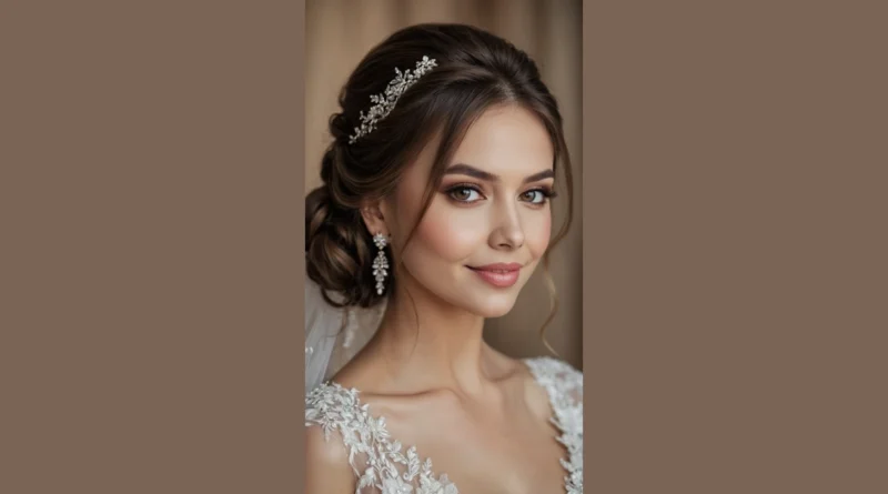And can we talk about that headpiece? It’s not just a headband; it’s like a tiny, sparkling garden decided to throw a party on her head, complete with delicate pearls and glittery bits that probably catch every single ray of sunshine. This whole look screams “I woke up like this… after three hours with a hair wizard!” It’s the ultimate romantic wedding hair goal, making anyone feel like the main character in a movie where everything just works out perfectly. Who knew hair could be this much of a showstopper? Definitely worth all the hairspray in the world!