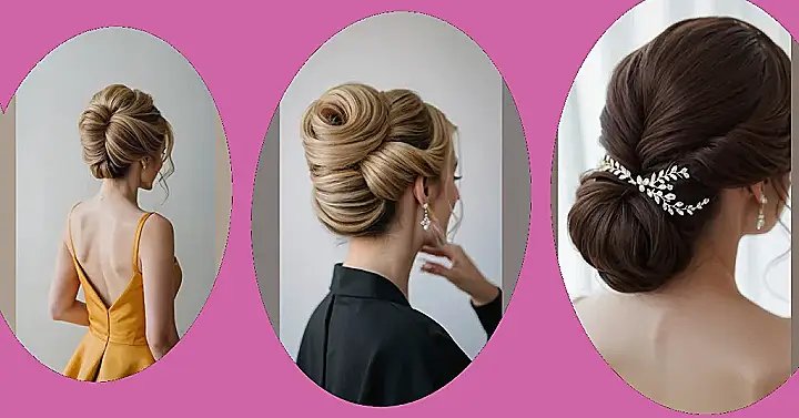 This picture shows a gorgeous French twist hairstyle—perfect for a wedding! It’s like a fancy bun, but way more elegant and sophisticated. Imagine all the compliments you’d get! It’s not just any old bun, it’s a work of art, like a sculpture made of hair, ready to wow everyone at the big day, or even a prom. This hairstyle is so chic, it almost makes you want to plan a wedding just to wear it!