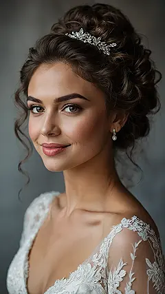 With a dazzling hairpiece that looks like it caught a whole constellation, her curls are definitely the star of the show. You can almost imagine them whispering, “We’re ready for the confetti, the dance floor, and maybe even a little bit of happy crying – we’ve got this!” It’s proof that embracing your natural texture, especially when you have beautiful curly hair, adds so much charm and personality to a bridal look. Plus, those little tendrils framing her face? Adorable, and probably secretly planning their next big adventure, like dodging champagne toasts!