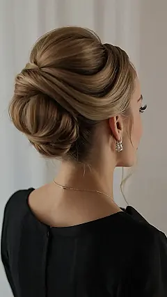 This picture shows a gorgeous French twist hairstyle—perfect for a wedding! It’s like a fancy bun, but way more elegant and sophisticated. Imagine all the compliments you’d get! It’s not just any old bun, it’s a work of art, like a sculpture made of hair, ready to wow everyone at the big day, or even a prom. This hairstyle is so chic, it almost makes you want to plan a wedding just to wear it!