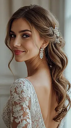 This look is a total win because it works for almost any wedding vibe. Whether you are having a fancy ballroom bash or a chill backyard BBQ, these loose waves and pretty accessories will make you feel like the star of the show. Just don’t forget to practice your ‘I do’ face in the mirror!