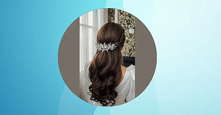 This hairstyle is seriously dreamy! Imagine walking down the aisle, feeling like a total princess with these luscious, wavy locks. That sparkly hair clip? It’s like a tiny crown for your hair, adding just the right amount of “wow” factor without being too over-the-top. It’s perfect for a wedding, prom, or even just a day when you want to feel extra fabulous. This look is less “serious wedding” and more “I’m ready to party!”