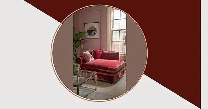 Imagine sinking into this plush, velvety chaise lounge – it’s like a giant, comfy hug! The rich red colour is seriously stunning against the soft pink walls, creating a room that’s both sophisticated and playful. It’s the perfect spot to curl up with a good book (or maybe just a giant bowl of popcorn!), and that cool abstract artwork adds a modern touch to the whole scene. This red room is clearly designed for serious relaxing.