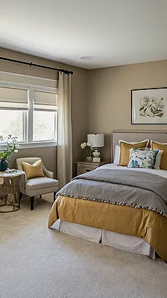 Let’s be real, that wall decor is not just decoration; it’s a whole vibe. The big vintage-looking piece practically screams “artsy,” like you spend your weekends at museums instead of binge-watching reality TV (even if you totally do). And that color scheme is just so calming. It’s like the designer was thinking, “How can I make this room scream ‘good vibes only’?”. You will definitely have the best sleep when your walls look this good.