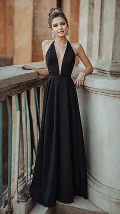 That deep V-neck and fancy sparkly crown? Pure prom royalty vibes! Rocking a look this epic for prom 2025 means you’re ready to own the night. Just be prepared for the challenge of eating pizza gracefully in a floor-length gown and figuring out where to stash your phone (maybe in your date’s pocket?). While the exact styles for 2025 might bring new twists, a stunning dress like this black one proves that feeling confident and ready to party (or just survive the awkward slow dances) is the ultimate prom accessory.