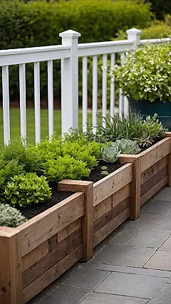 The plants in these snazzy wooden deck planters are probably living their absolute best life. They’ve landed prime real estate right by the patio, getting all the sunshine without having to fight with pesky weeds down in the messy ground. Plus, they look like they’re having a super chill family reunion, all cozied up together in their stylish wooden boxes. You can almost hear them gossiping about the latest watering schedule or bragging about who’s sprouted the most new leaves this week. It’s basically a plant VIP lounge, complete with tiny succulents chilling next to leafy green bushes – way cooler than just sitting alone in a regular old pot!