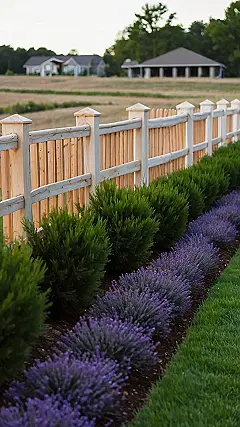 Using property line landscaping is a smart way to avoid awkward chats with your neighbors about where your yard ends. Nobody wants to accidentally mow half of Mrs. Henderson’s prize-winning petunias! This fence with plants is like a friendly reminder, “Hey, that’s my side, and yours is… well, also yours!” Plus, if you plant something like lavender, as shown, it can also smell amazing and attract all sorts of cool bees and butterflies. It is a win-win!