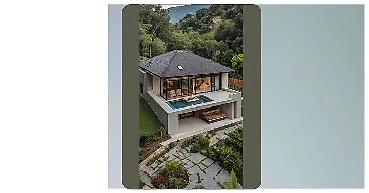 Beyond the double-door mystery, this place practically screams “tropical vacation retreat” with a modern twist. Tucked away amongst all those tall, green trees, it feels like a secret hideout where you could escape boring chores and endless homework. The warm glow from the windows and those friendly lights outside make it super inviting, like it’s saying, “Come on in, we’ve got good vibes and maybe a hidden trapdoor behind one of these doors!” It’s definitely not a cookie-cutter house, and that unique design makes it stand out in the most hilariously cool way possible.