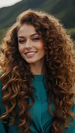 This picture is seriously giving me major hair envy! Look at those gorgeous, bouncy curls! It’s like a chocolate waterfall cascading down, and I bet it takes less time to style than my straight hair, which always seems to have a mind of its own. Seriously, if I had hair like that, I’d be sporting a different cute hairstyle every single day—maybe even a crazy curly unicorn horn one day, why not?! The possibilities are endless with curls this amazing.