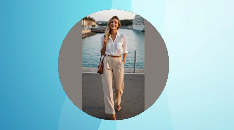 Forget stressing over what to wear when that big cruise ship in the background calls your name! This outfit is basically a masterclass in looking effortlessly cool without trying too hard. It says, ‘Yes, I’m on vacation, and yes, I ironed this shirt… or maybe my personal stylist did, who knows?’ It’s the kind of look that makes you feel amazing whether you’re exploring new ports or just posing for the perfect selfie by the water. So go ahead, pack those comfy pajamas, but definitely make room for an outfit that screams ‘vacation queen’ just like this one!