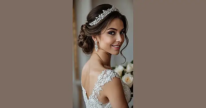 Beyond just the hair, this whole look screams ‘glam goddess has arrived!’ Her eyes are sparkling almost as much as that headband, and her makeup is so flawless, it probably comes with its own personal fan club. It’s the ultimate bridal glow-up, making her look ready for her big day, a red carpet event, or maybe even a spontaneous photoshoot where she’s just casually looking amazing. She’s definitely got that happy bride sparkle, proving that ‘glam bridal hair’ is just one piece of her show-stopping, ‘I’m marrying my best friend’ puzzle!