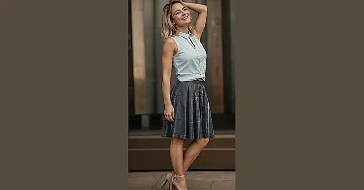Let’s talk about those accessories, though. Those earrings are seriously glam, and they add a touch of sparkle that elevates the whole look. You know what else? It’s all about confidence! This lady is smiling so bright, it’s contagious! Even if you’re just running errands, you can channel her energy and make your skirt outfit the star of the show. Remember, when you feel good, you look good!
