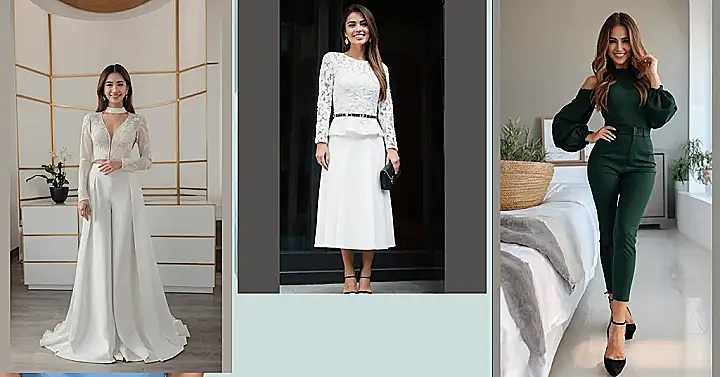 The woman in this picture is rocking a white outfit that’s totally chic! It’s a two-piece outfit with a lacy top and wide-legged pants, making it perfect for a fancy event or a night out with friends. It’s like a princess meets a modern queen – sophisticated but with a fun, relaxed vibe. The top is sheer, which adds a touch of glam, and the pants are flowy and comfortable, so you can dance the night away without feeling restricted.