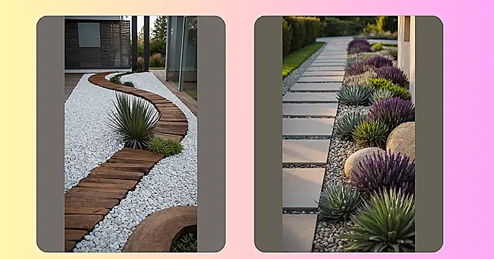 And it’s not just about big stepping rocks! Look at all those smaller pebbles next to the path in the image – they’re like the garden’s fashion accessories. Using different types of rocks, from chunky gravel to smooth river stones, adds texture and makes your plants pop. It’s like creating mini-landscapes that require zero mowing and survive pretty much anything. Landscaping with rocks lets you get creative, build cool zones, and best of all, they won’t ever ask you for snacks or complain about weeding.