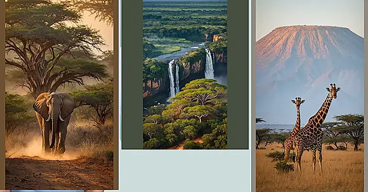 Gazing at this scene, you can almost feel the spray from those powerful waterfalls! Those vibrant green trees, some with branches sprawling like giant umbrellas, cling to the cliffs, making the whole scene look like a fantasy movie set. The way the water crashes down creates this misty cloud that probably feels super refreshing on a hot day. This isn’t just a pretty picture; it’s a reminder of how wild and wonderful Africa’s natural places are, just begging for adventurers (and photographers with really good cameras!) to explore. It’s definitely a view that makes you want to pack your bags and go chase some waterfalls, just be ready for a serious splash!