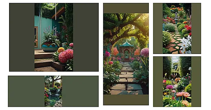 This garden isn’t just beautiful, it’s bursting with personality. With the lush green leaves, colorful flowers, and even a little pond, it’s like a mini-world all its own. Maybe there’s a talking frog living in the pond or a tiny unicorn hiding in the bushes. Who knows what secrets this garden holds? It’s waiting for you to explore and find out!