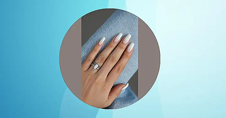 These nails are rocking that ‘milky nails manicure’ look, making them seem as cool and refreshing as a perfectly blended smoothie. With their long, elegant shape and that soft, translucent white, they’re giving off major main character energy without being too loud. Just look at how they pop against the casual denim, while those awesome rings add just the right amount of sparkle – it’s like a tiny, shiny party on your finger! It’s the kind of vibe that makes you feel put-together, even if you’re just binging your favorite show and haven’t left the house all day.
