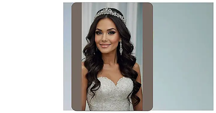 This bride’s hair is giving us major princess vibes! It’s long, it’s flowing, and it’s got a sparkly little crown that makes it look like she’s straight out of a fairytale. It’s like she just stepped off the page of a romance novel, except instead of being worried about her hair, she’s probably more concerned about making sure her fiancé doesn’t cry during the vows (guys, it happens!).
