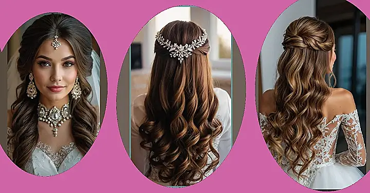 Imagine walking down the aisle with hair that basically screams “I’m ready to party AND get married!” That’s what this look gives us. It’s like, yes, you can totally see the blingy headpiece, but have you seen those curls? They’re ready to do the cha-cha, the macarena, maybe even that awkward dance your uncle does. This is the kind of hairstyle where you know you’ll look amazing in photos, even if you’re busting a move harder than anyone else at the reception.