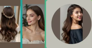 Imagine rocking this look at your wedding! This hairstyle is like a secret weapon – super pretty without being too complicated. It’s all about the length, those gorgeous waves, and a fancy headband that’s basically jewelry for your hair. You’d be dancing the night away, feeling like a total princess, without having to worry about a million bobby pins digging into your scalp!