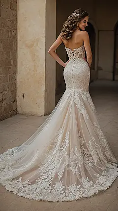 Wearing something like this means you’d probably feel like a total superstar, ready for your big entrance! Just make sure you practice your graceful walk beforehand, because that fabulous train isn’t going to drag itself down the aisle perfectly (unless you hire a team of tiny, invisible helpers). And when it comes to dancing, you might have to invent a whole new style – ‘the elegant shuffle’ – to avoid tripping over all that gorgeous lace. But honestly, who cares? You’d look so incredible in this ‘top wedding dress’ that everyone would just be cheering you on, even if you did a little accidental pirouette.